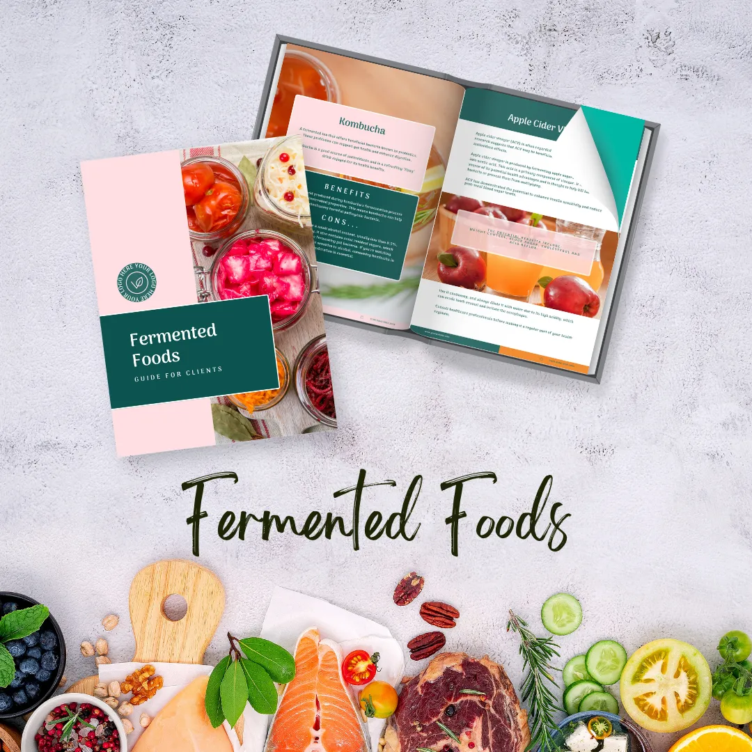 Introduce the 'Fermented Foods' guide to your clients, offering a valuable resource to help them unlock the benefits of fermented foods for improved digestive health and overall well-being.