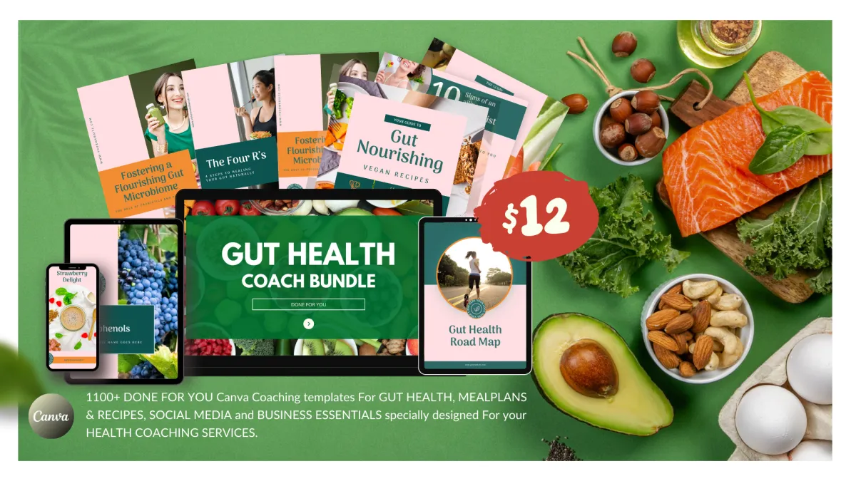 With ALL the professionally designed 1100+ Gut Health Coaching Canva Templates